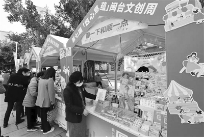 集市现场,来自台北、台南、台中、新北、金门的20多家文创品牌和30多家福建本土的文创品牌,以新奇多变、丰富精致的文创设计产品,吸引民众纷纷驻足。此次活动还邀请两岸潮流演出团队开展艺文展演,集街舞、摇滚、民谣、涂鸦等潮流文化元素,呈现丰富多彩的两岸文化艺术。